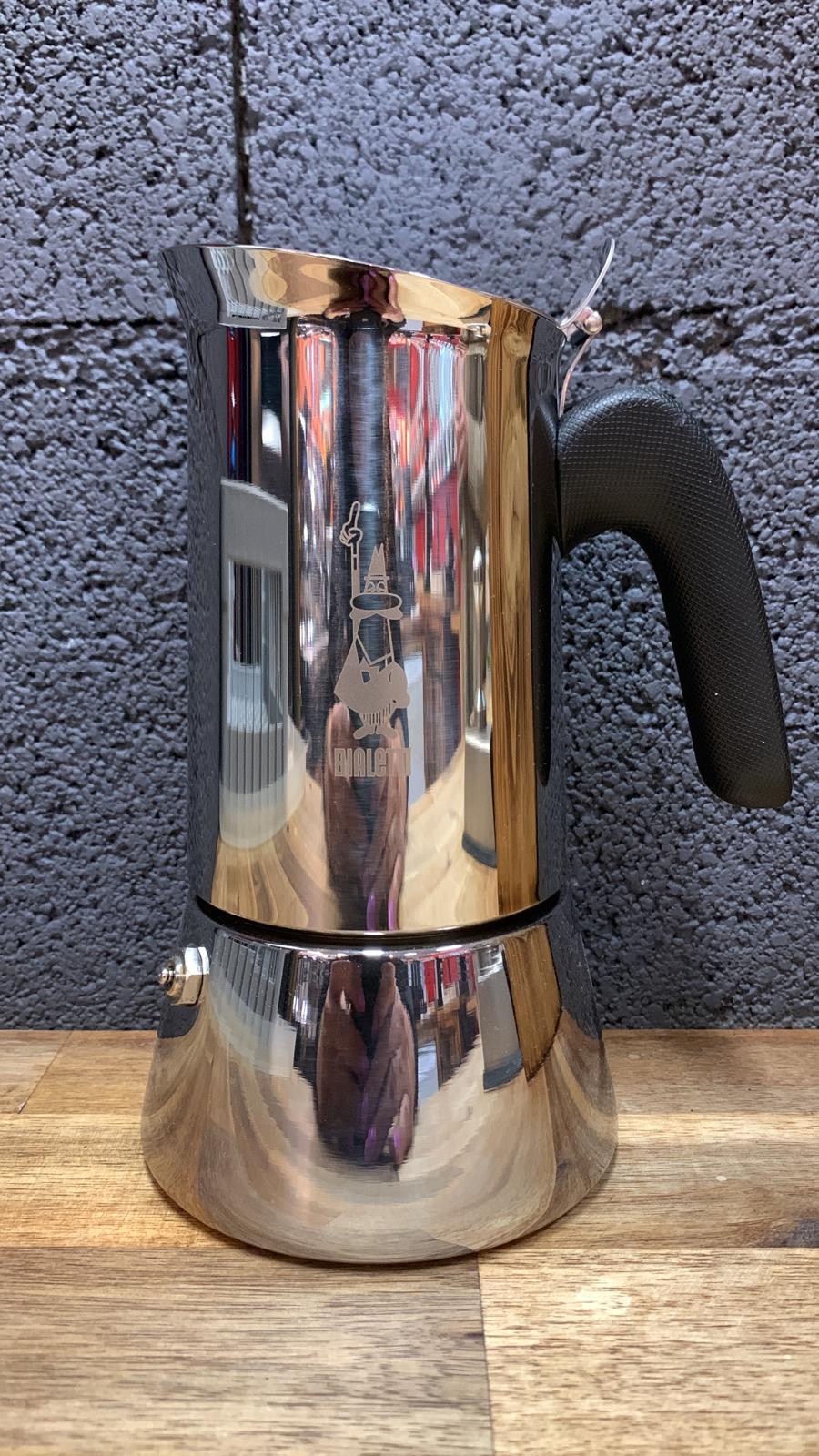 Cafetière italienne Bialetti Venus en acier inoxydable, élégante et robuste, idéale pour préparer un espresso intense et aromatique à la maison. Design moderne avec poignée ergonomique antidérapante pour une prise en main sécurisée.