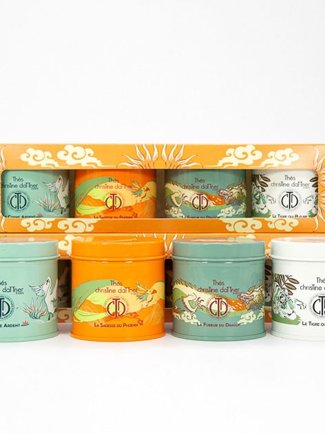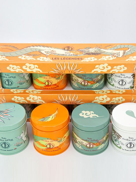 Le Coffret des Légendes est une composition qui rassemblent les animaux de légende et composé de 4 mini boîtes (double-couvercle) laquées de 50 grammes chacune: