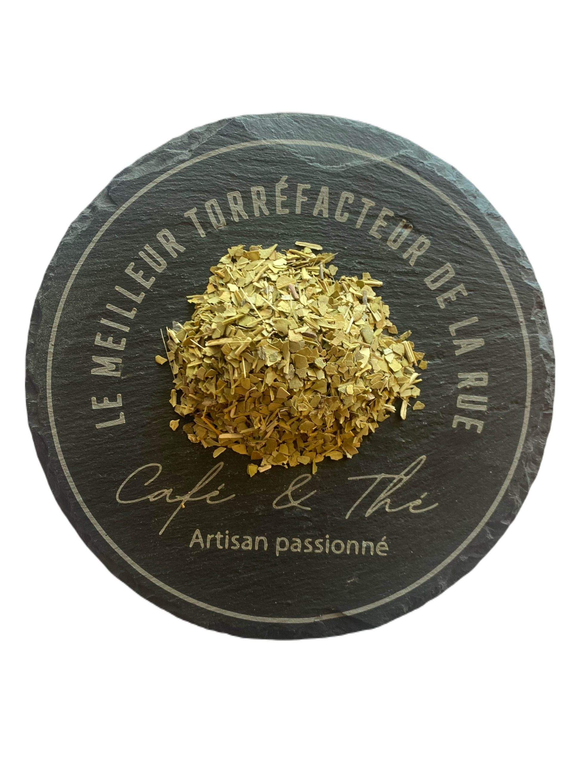 Maté vert biologique directement importé d’Amérique du Sud plus précisément du Brésil. Il peut se consommer avec un nuage de lait. Cette boisson très énergisante, emblématique des pays d’Amérique Latine, se déguste traditionnellement dans une calebasse, les feuilles infusent longuement dans une calebasse dotée d’une pipe filtrante.