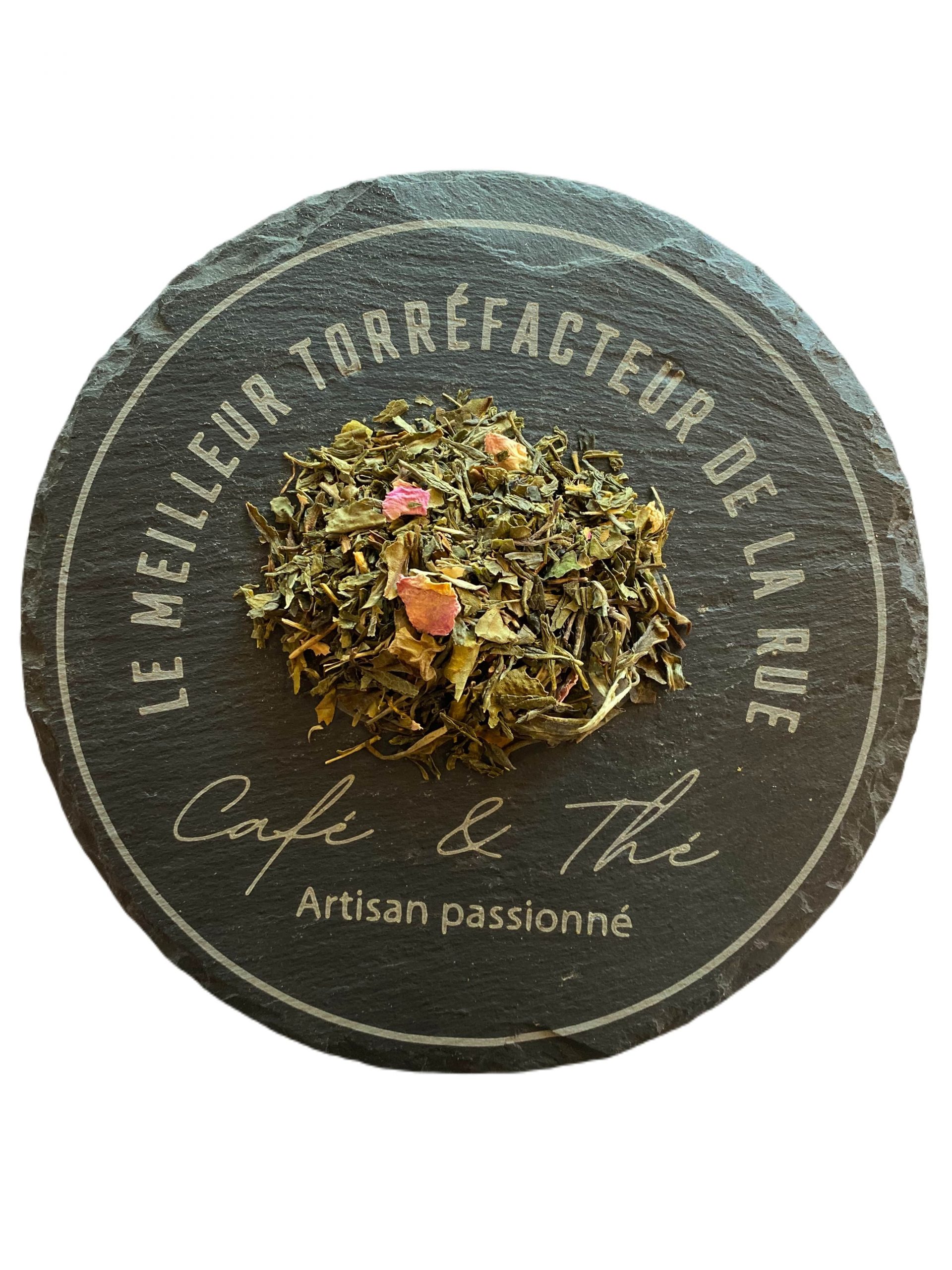 Printemps à Nagoya est assemblage de thé blanc et de thé vert aromatisé à la fleur de cerisier japonais, à l’orchidée et à la rose.