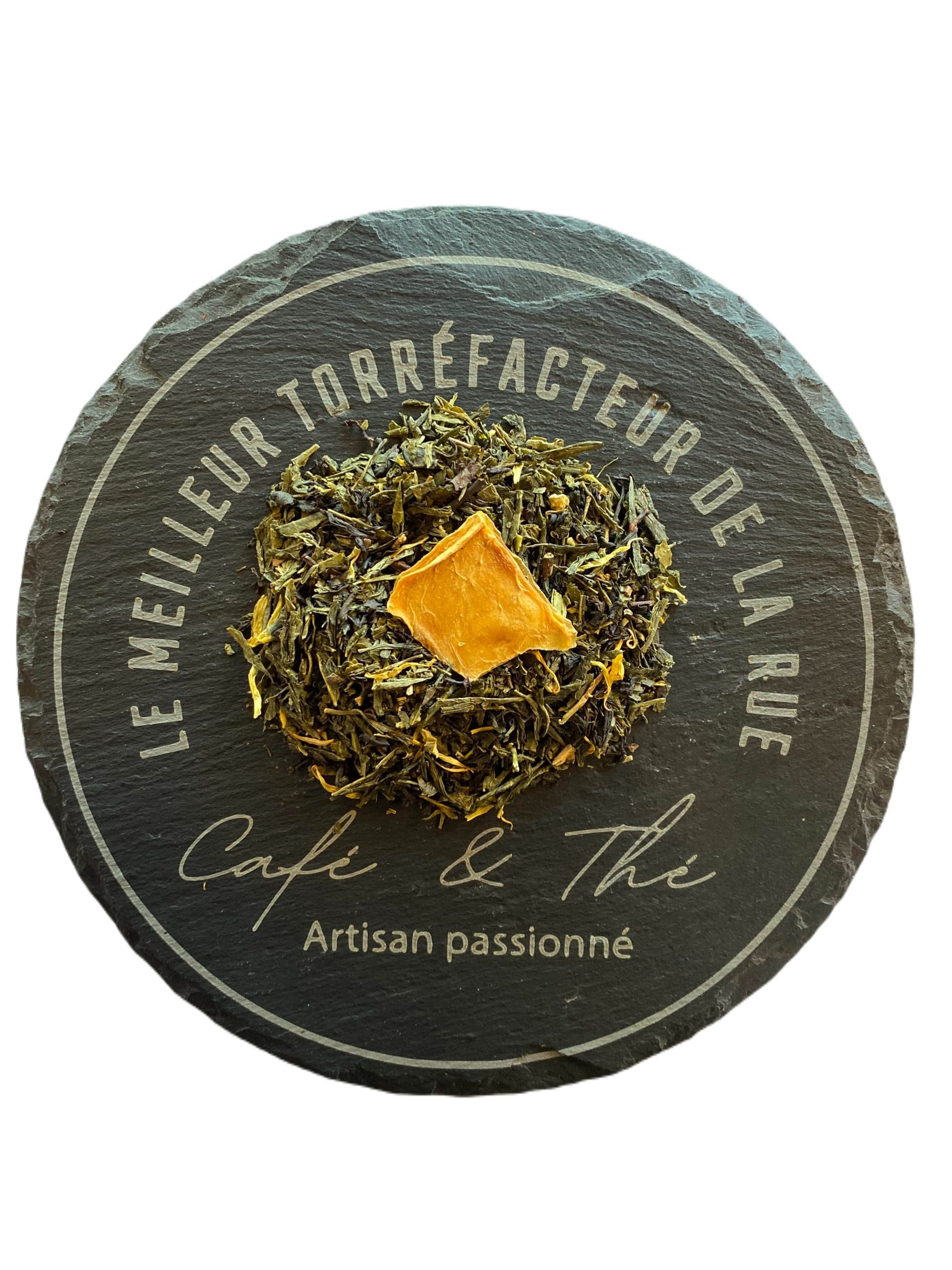 Thé des sept mers est un thé vert sencha aromatisé à la mangue, coco, rhum, ananas et citron vert. Voici pour vous un véritable voyage dans les îles.