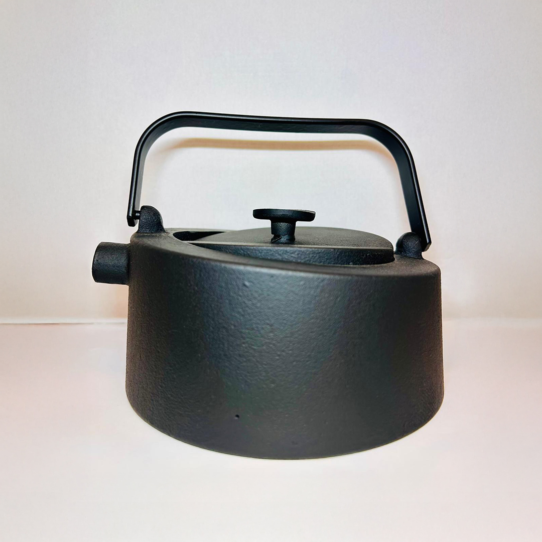 Théière en fonte plate 90 cl au design minimaliste noir mat. Idéale pour conserver la chaleur et sublimer votre rituel du thé avec élégance.