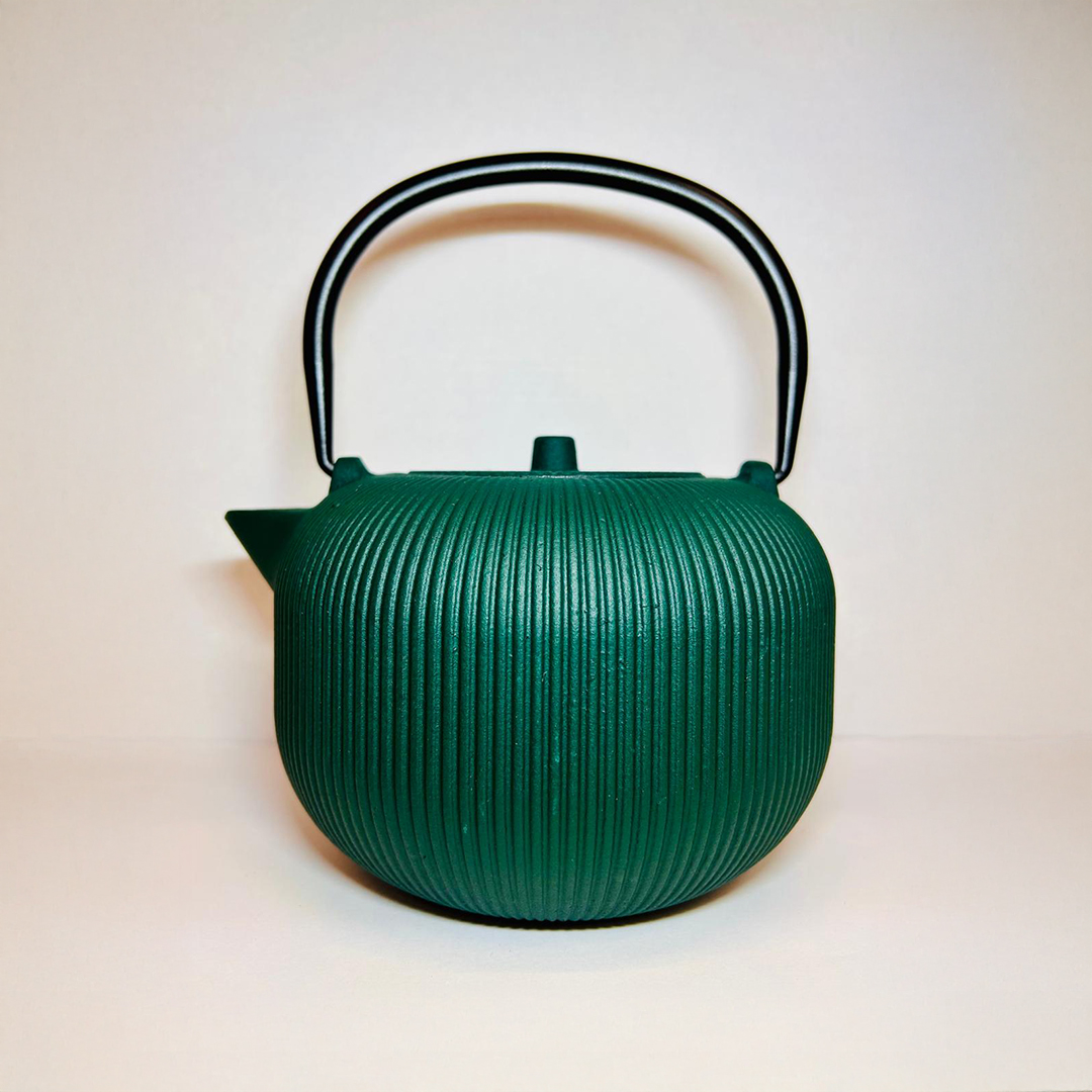 Théière en fonte tressée verte 1 litre, inspirée du style japonais traditionnel. Idéale pour conserver la chaleur et sublimer votre rituel du thé.