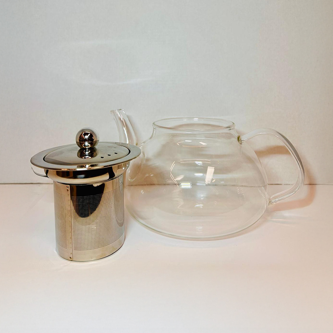 Théière ronde Aladin 850 ml en verre résistant à la chaleur avec filtre infuseur en acier inoxydable. Idéale pour infuser vos thés en vrac avec élégance et précision.